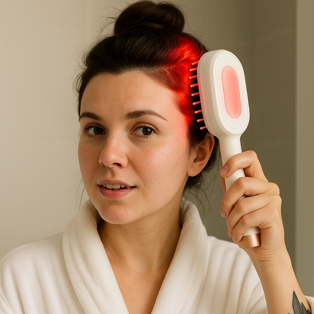 At FollicaLabs, we use red‑light and near‑infrared technology — the only science‑backed method proven to combat hair loss and stimulate new growth.